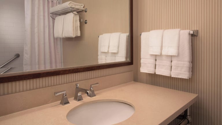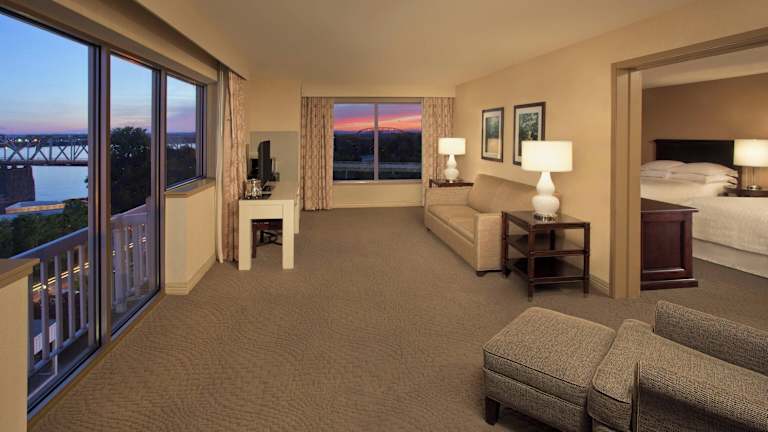 Die Zimmer im Sheraton Louisville Riverside Hotel bieten allen Komfort, den Sie für einen angenehmen Aufenthalt benötigen. Jedes Zimmer verfügt über einen 42-Zoll-Flachbild-Kabel-TV, kostenloses WLAN und Kaffee von Starbucks®. Ein kostenfreier Bademantel ist ebenfalls im Preis inbegriffen.