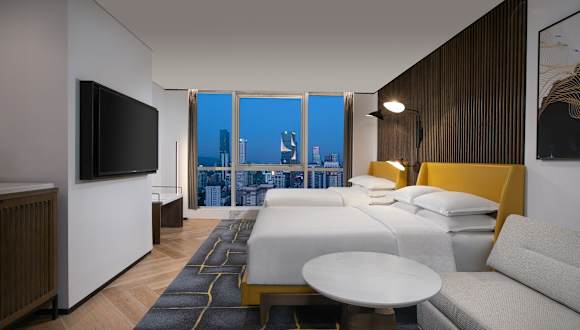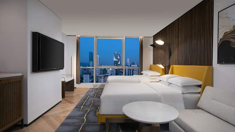 Das Sheraton Nanjing Kingsley Hotel & Towers bietet insgesamt 350 Zimmer, die auf 41 Etagen verteilt sind. Die Zimmer sind geräumig und klimatisiert, modern eingerichtet und bieten Annehmlichkeiten wie einen eigenen Safe, Kaffee- und Teezubehör sowie einen Flachbild-Kabel-TV. Die Badezimmer sind gut ausgestattet und verfügen über kostenfreie Pflegeprodukte sowie einen Haartrockner.