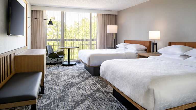 Die 390 Zimmer des Sheraton Orlando North bieten geräumige Unterkünfte auf 6 Etagen. Jedes Zimmer verfügt über Annehmlichkeiten wie einen 55-Zoll-Smart-TV, eine Kaffeemaschine, einen Schreibtisch und ein eigenes Bad. Die neu renovierten Zimmer bieten zudem raumhohe Fenster und einen Balkon, auf dem Sie den Tag beginnen können.