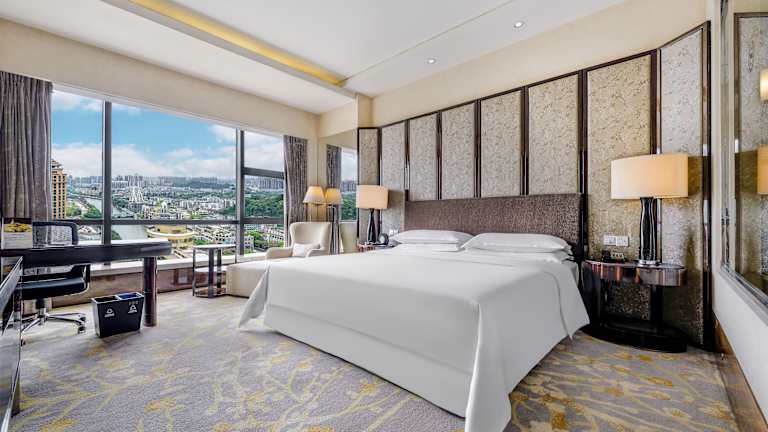 Die Zimmer im Sheraton Zhongshan Hotel sind geräumig und modern eingerichtet. Jedes Zimmer verfügt über eine vollständige Klimatisierung und Annehmlichkeiten wie einen eigenen Safe, Kaffee- und Teezubereitungsmöglichkeiten und einen Flachbild-Sat-TV. Das private Badezimmer ist mit kostenfreien Pflegeprodukten und einem Haartrockner ausgestattet.