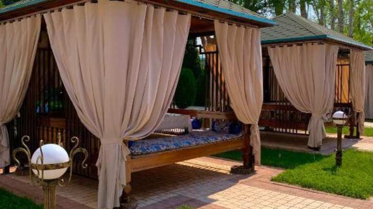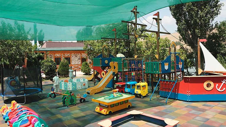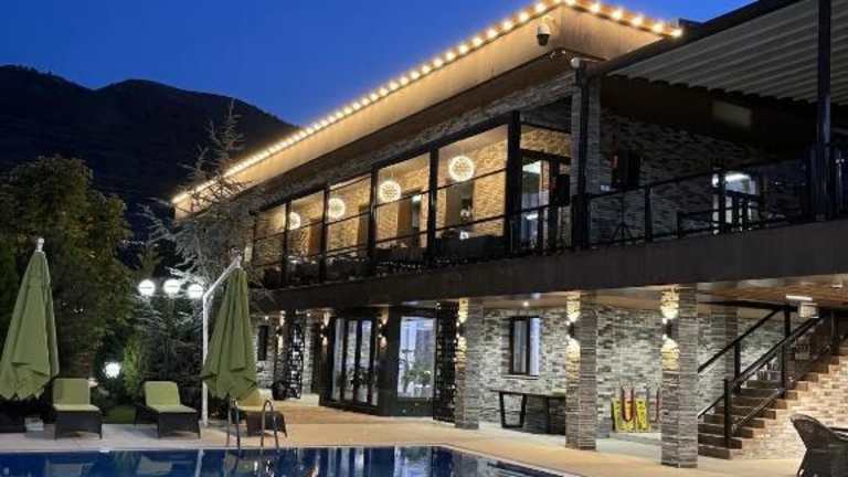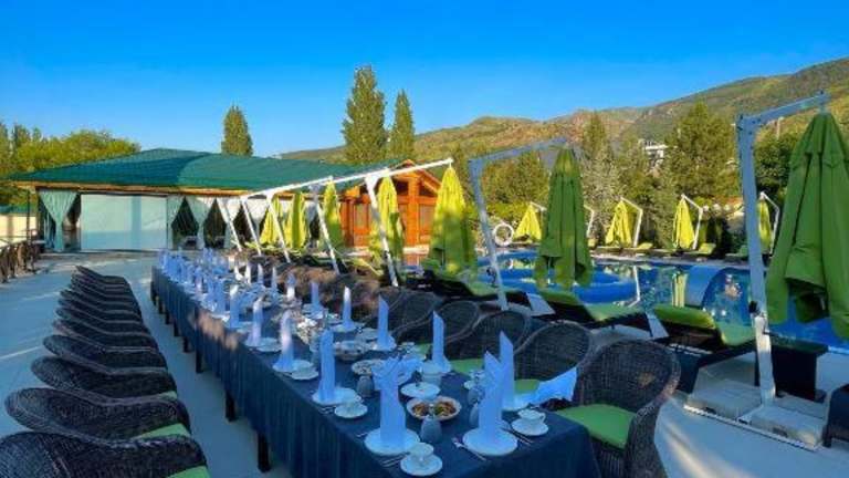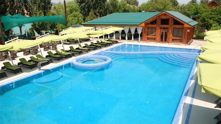 Eine großzügige Anlage mit zwei Swimmingpools. Die Anlage ist eher für Familien geeignet. Ideal für eine Auszeit von Taschkent, da es eine schöne Umgebung gibt und die Temparaturen im Juni nicht so hoch sind.