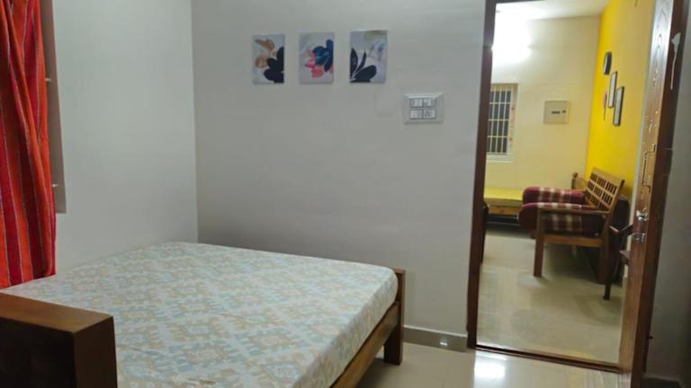 SHI's Bhairavi Peaceful 2bhk villa bietet eine komfortable Unterkunft mit zwei Schlafzimmern und zwei Badezimmern, ideal geeignet für Familien oder kleine Gruppen. Die Villa verfügt über eine Terrasse, einen Garten sowie einen Zimmerservice und ist eine Nichtraucherunterkunft.