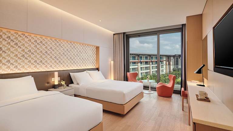 Die klimatisierten Zimmer im Shinhwa Jeju Shinhwa World Hotels sind modern eingerichtet und bieten den Gästen einen komfortablen Aufenthalt. Jedes Zimmer verfügt über einen Sitzbereich, einen Flachbild-Sat-TV, einen Safe und ein eigenes Bad mit einer Dusche, kostenfreien Pflegeprodukten und einem Haartrockner. Einige Zimmer verfügen auch über einen Balkon, der einen schönen Ausblick bietet. Jedes Zimmer ist mit einem Wasserkocher, Bettwäsche und Handtüchern ausgestattet.