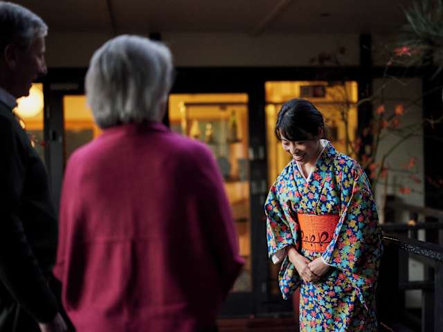Die Zimmer im Ryokan Shizuka sind mit authentischen Strohfußböden ausgestattet und verfügen über eine Engawa-Nische mit Blick auf einen privaten japanischen Garten. Jedes Zimmer bietet ein eigenes Bad mit einem Whirlpool für zwei Personen, einer separaten Dusche, traditionellen Baumwollbademänteln und weichen Hausschuhen.