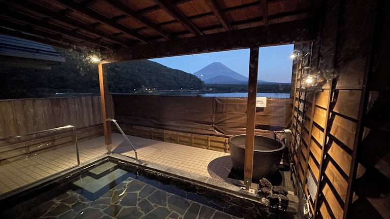 • Die Lage am Shoji-See mit Blick auf den Fujisan ist atemberaubend.