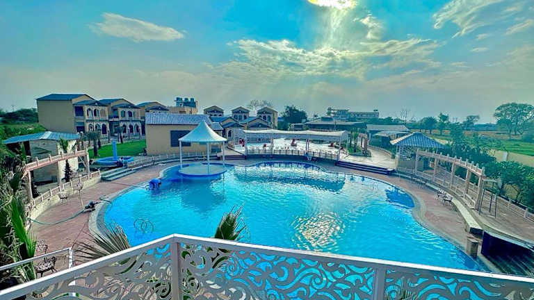 Das Shubhim Hotel & Resort MIDWAY TREAT MPT FRANCHISE in Gwalior ist eine ideale Unterkunft für Reisende, die eine komfortable und entspannte Atmosphäre suchen. Mit einem Fitnesscenter, kostenfreien Privatparkplätzen und einem Restaurant, das eine Vielzahl von köstlichen Gerichten anbietet, bietet das Hotel alles, was Sie für einen angenehmen Aufenthalt benötigen. Die Zimmer sind modern und gut ausgestattet, und einige bieten einen atemberaubenden Blick auf den Pool. Genießen Sie ein leckeres vegetarisches Frühstück und erkunden Sie die nahegelegenen Sehenswürdigkeiten wie den Tempel Sasbahu und das Fort Gwalior.