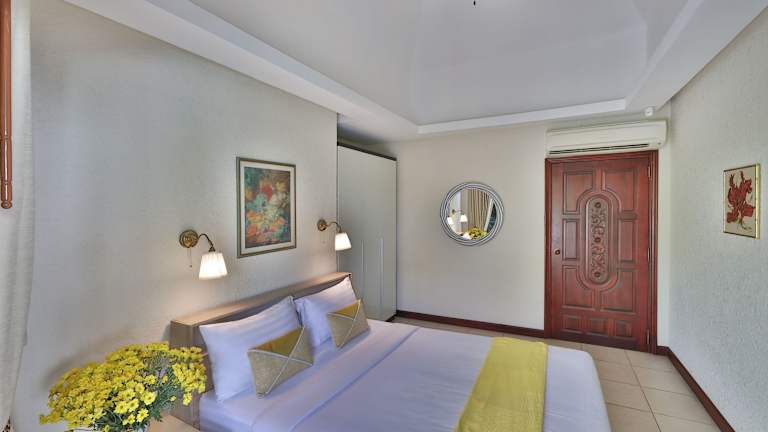 Die Villa umfasst vier Schlafzimmer, ein Wohnzimmer und eine voll ausgestattete Küche mit Kühlschrank und Wasserkocher. Zudem sind vier Badezimmer vorhanden, die mit Bidets und Duschen ausgestattet sind. Handtücher und Bettwäsche werden bereitgestellt. Die Villa ist klimatisiert und bietet Platz für Familien und Gruppen.