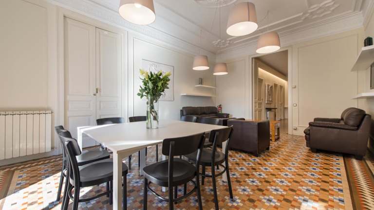 Die Zimmer sind elegant dekoriert und bieten hohe Decken. Es gibt eine ausgestattete Küche sowie einen Wohn- und Essbereich. Ausreichend Handtücher und Bettwäsche sind vorhanden. Weitere Informationen über die Verfügbarkeit der Zimmer und die Anforderungen an die Anzahl der Gäste können direkt erfragt werden.