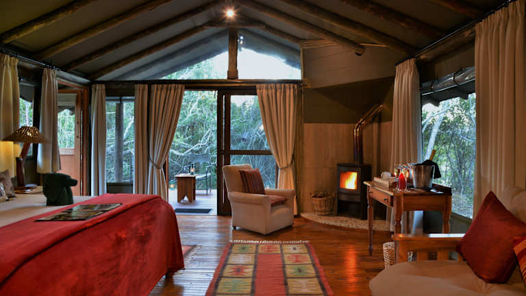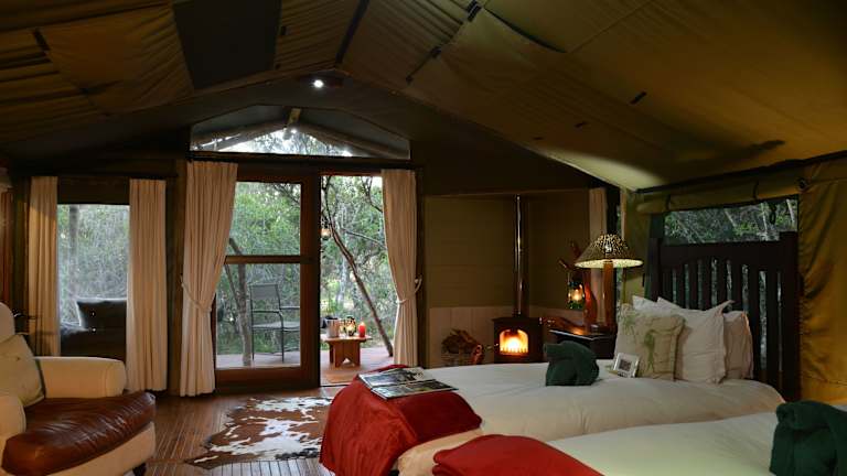 Die Zelte im Sibuya Game Resort verfügen über eine Terrasse mit herrlichem Blick auf den Fluss oder den Wald und sind in zwei separaten Camps untergebracht. Jedes Zelt bietet luxuriöse Betten, ein eigenes Badezimmer im afrikanischen Stil mit freistehender Badewanne, sowie Glastüren, die auf ein Holzdeck führen. Die Unterkünfte bieten rauchfreie Zimmer mit einer Größe von etwa 65 m² und sind mit Parkettboden, Sofa, Kamin und separater Dusche ausgestattet. Die Bush Lodge verfügt über abgeschiedene Suiten mit eigenen Außen- und Innenduschen sowie privaten Sonnendecks.