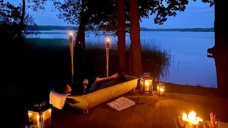 Das Ferienhaus bietet Ihnen eine Vielzahl von Freizeitmöglichkeiten. Nutzen Sie die Sauna, um sich zu entspannen und zu erholen. Die Unterkunft verfügt auch über einen eigenen Strandbereich, an dem Sie die Sonne und das Wasser genießen können. Erkunden Sie die Umgebung und besuchen Sie das Stadion Ostroda oder das Arboretum in Kudypy, um mehr über die natürliche Schönheit der Region zu erfahren.
