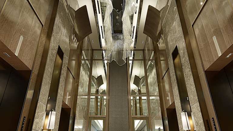 Das Hotel befindet sich in Seoul, zwischen den Etagen 76 und 101 des Lotte World Towers. Eine unterirdische Passage verbindet die Unterkunft direkt mit dem U-Bahnhof Jamsil, der die Linien 2 und 8 umfasst. Die Entfernung zum Flughafen beträgt etwa 70 Kilometer.