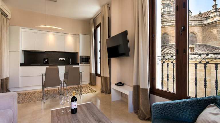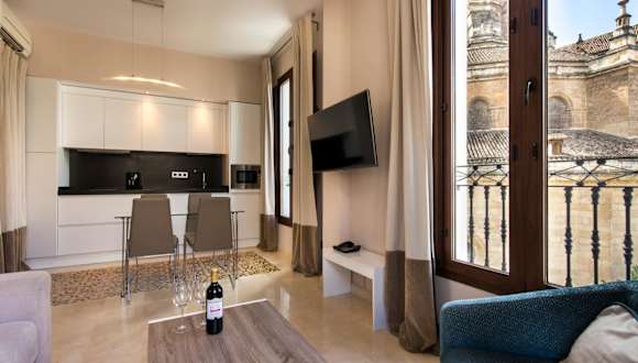 Das Siloe Plaza in Granada ist eine Apartmentanlage zur Selbstverpflegung, die sich ideal im Zentrum der Stadt befindet. Die Unterkunft bietet geräumige und geschmackvoll eingerichtete Apartments mit allen Annehmlichkeiten, die man für einen komfortablen Aufenthalt benötigt. Die Lage ist perfekt, da die Kathedrale von Granada nur 50 m entfernt ist und die Stadtburg Alhambra in 900 m erreicht werden kann. Erkunden Sie die charmanten Gassen des historischen Viertels Albaicín, das nur 400 m entfernt liegt.