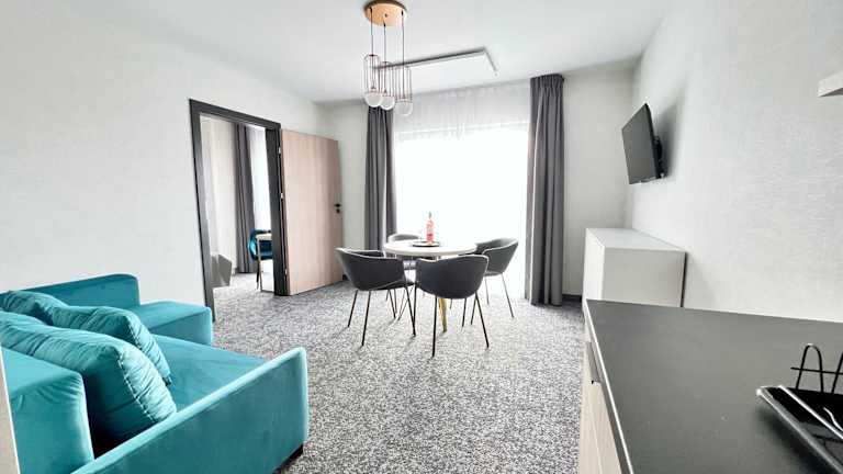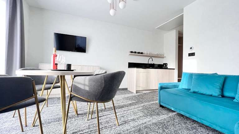 Die Unterkunft SILVER BALTIC liegt 2,2 km vom Weststrand entfernt. Die Entfernung zum Kolberg Bahnhof beträgt 2,6 km, während die Strandpromenade Kolberg 2,9 km entfernt ist. Der nächstgelegene Flughafen ist der Flughafen Stettin-Goleniów, der sich 91 km von der Unterkunft entfernt befindet.