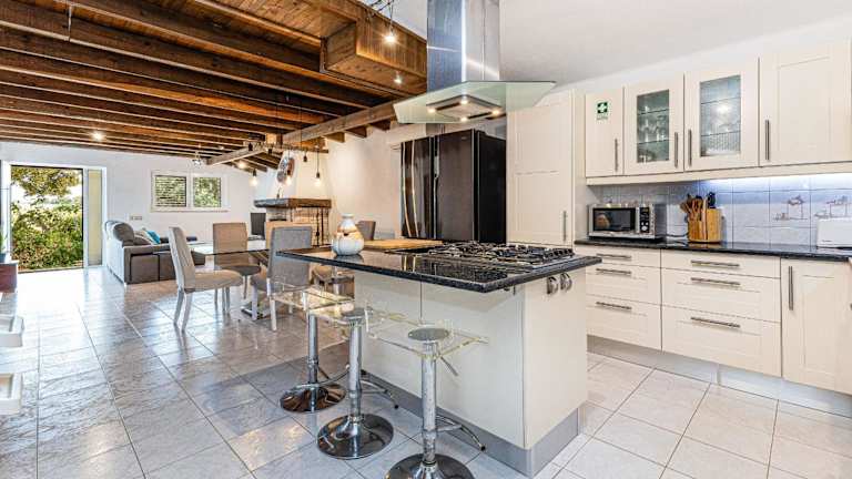 Die Villa ist klimatisiert und umfasst 3 Schlafzimmer, ein Wohnzimmer sowie eine voll ausgestattete Küche mit Kühlschrank und Kaffeemaschine. Zur Ausstattung gehören außerdem 3 Badezimmer mit Dusche und Haartrockner. Handtücher und Bettwäsche werden bereitgestellt.