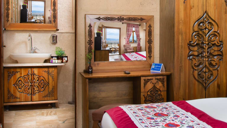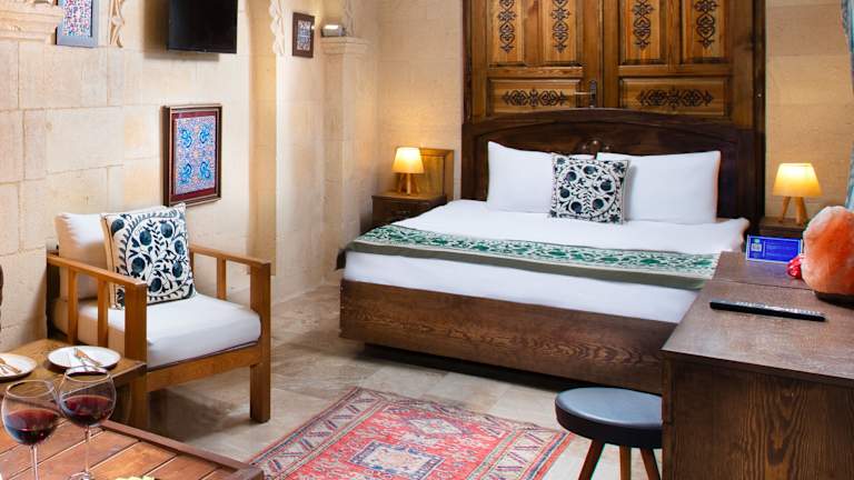 Die Zimmer im Hotel Simera in Cappadocia sind modern und komfortabel eingerichtet. Jedes Zimmer verfügt über einen Flachbild-Sat-TV, eine Minibar, einen Wasserkocher und einen Kleiderschrank. Die Badezimmer sind mit einer Dusche, kostenlosen Pflegeprodukten und einem Haartrockner ausgestattet. Einige Zimmer bieten einen Balkon oder einen atemberaubenden Blick auf die Berge. Für Ihre Sicherheit steht ein Safe zur Verfügung.
