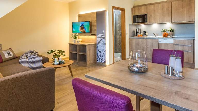 Da es sich um Ferienwohnungen handelt, haben Sie die Möglichkeit, Ihre Mahlzeiten selbst zuzubereiten. Die Apartments verfügen über eine voll ausgestattete Küche, in der Sie Ihre Lieblingsgerichte zubereiten können. Alternativ können Sie auch die nahegelegenen Restaurants und Cafés besuchen, um die lokale Küche zu probieren.