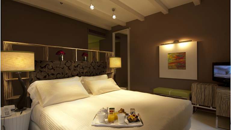 Das Centurion Palace bietet eine Auswahl an stilvollen Zimmern, die mit dezenter Eleganz und modernem Komfort gestaltet sind. Die Zimmer verfügen über Holzbalkendecken und Holzböden und sind in dezenten Farben gehalten. Zur Ausstattung gehören eine Klimaanlage, eine Minibar, ein Flachbild-TV und ein modernes Bad mit Bademänteln und Hausschuhen.
