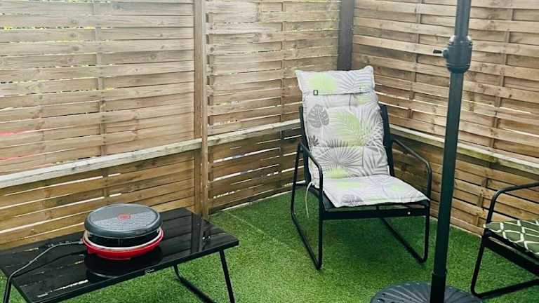 Die Ferienwohnung ist mit einer voll ausgestatteten Küchenzeile eingerichtet, die einen Kühlschrank, einen Geschirrspüler, eine Waschmaschine, einen Ofen sowie eine Mikrowelle umfasst. Handtücher und Bettwäsche werden ebenfalls zur Verfügung gestellt.