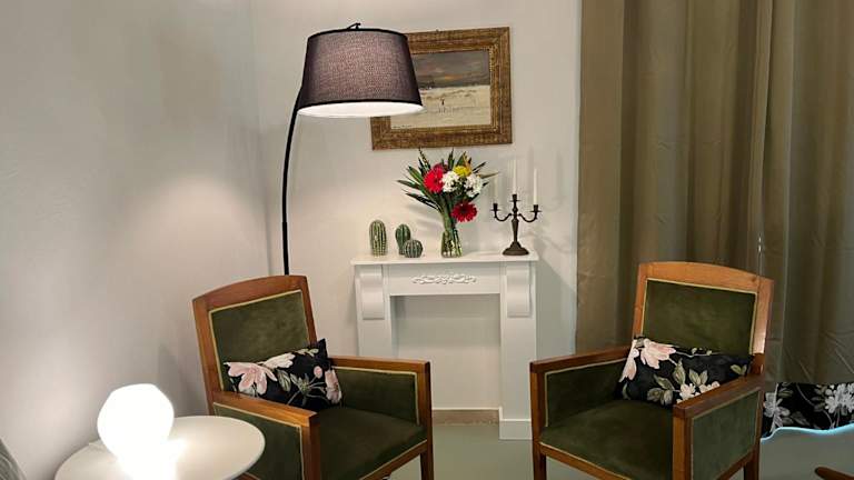 Die Ferienwohnung besteht aus 2 Schlafzimmern, einem Wohnzimmer sowie einer voll ausgestatteten Küchenzeile, die einen Kühlschrank und eine Kaffeemaschine umfasst. Es gibt ein Badezimmer mit Bidet und Dusche. Handtücher und Bettwäsche werden bereitgestellt.
