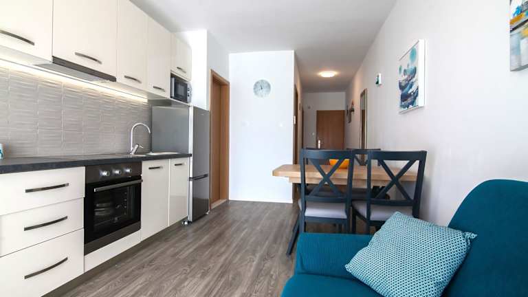 Die Apartments verfügen über eine Terrasse mit Blick auf das Meer und sind mit einem Sitzbereich, einem Flachbild-Satelliten-TV, einer voll ausgestatteten Küche, einem Kühlschrank, einem Geschirrspüler, einem Ofen, einer Mikrowelle und einer Herdplatte ausgestattet. Außerdem sind ein Kaffee- und Wasserkocher sowie ein eigenes Badezimmer mit Dusche und Haartrockner vorhanden. Die Unterkunft stellt Bettwäsche, Handtücher und Wäsche bereit, die gemäß örtlichen Richtlinien gewaschen werden.