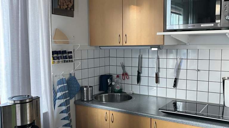 Die Ferienwohnung verfügt über zwei separate Schlafzimmer und eine voll ausgestattete Küchenzeile, die mit einem Kühlschrank und einer Mikrowelle ausgestattet ist. Ein Badezimmer ist ebenfalls vorhanden. Die Unterkunft bietet auf Anfrage Handtücher und Bettwäsche gegen Aufpreis an.
