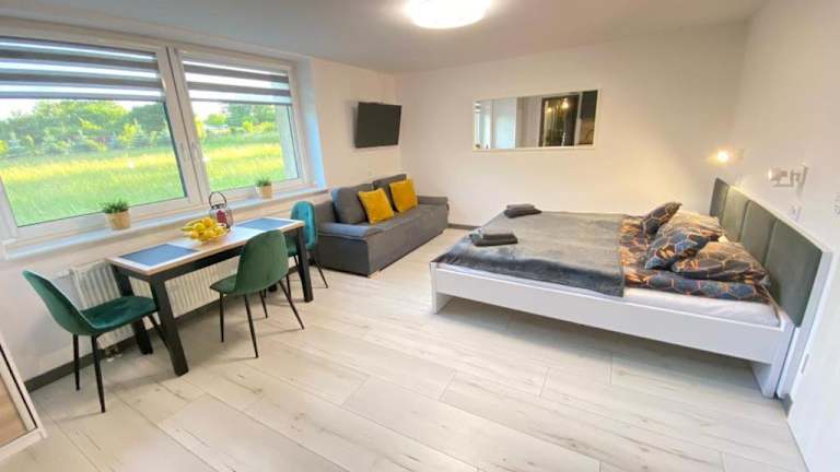 Das SKALNY apartamenty, pokoje bietet seinen Gästen kostenfreie Privatparkplätze. Genießen Sie die Ruhe und Entspannung im Garten oder erkunden Sie die Umgebung mit ihren zahlreichen Freizeitmöglichkeiten. Besuchen Sie zum Beispiel das nahegelegene Schloss Ogrodzieniec oder unternehmen Sie einen Spaziergang durch die malerische Landschaft.