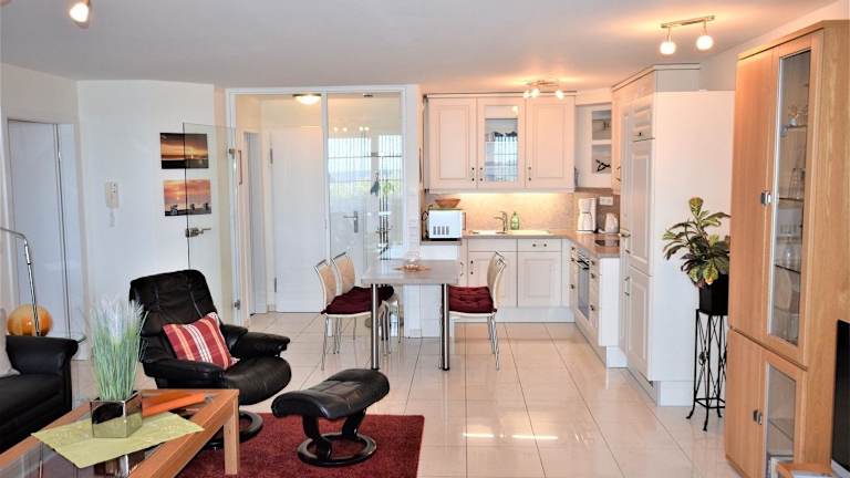 Die Ferienwohnung verfügt über 1 Schlafzimmer und ist mit einem TV sowie einer voll ausgestatteten Küche ausgestattet. Die Küche beinhaltet einen Kühlschrank, einen Geschirrspüler, eine Waschmaschine, einen Ofen und eine Mikrowelle. Handtücher und Bettwäsche werden bereitgestellt. Ein Kinderspielplatz ist ebenfalls vorhanden.
