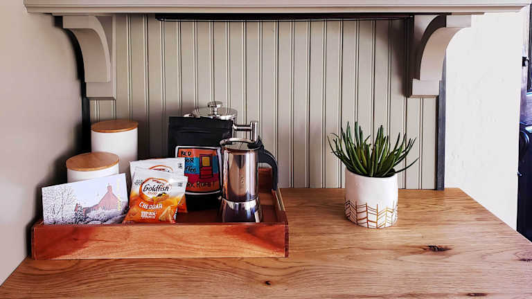 Das Ferienhaus verfügt über ein separates Schlafzimmer und ein Wohnzimmer, sowie eine voll ausgestattete Küche mit Kühlschrank und Geschirrspüler. Es bietet außerdem ein Badezimmer. Handtücher und Bettwäsche werden in der Unterkunft bereitgestellt.