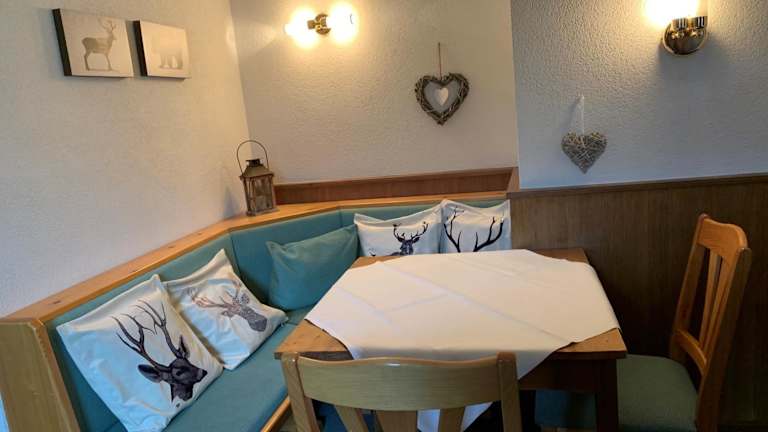Die Ferienwohnung verfügt über ein Schlafzimmer, ein Wohnzimmer, einen Flachbild-TV, eine gut ausgestattete Küchenzeile mit Kühlschrank und Herdplatte sowie ein Badezimmer mit Dusche. Des Weiteren gibt es einen Balkon mit Bergblick.
