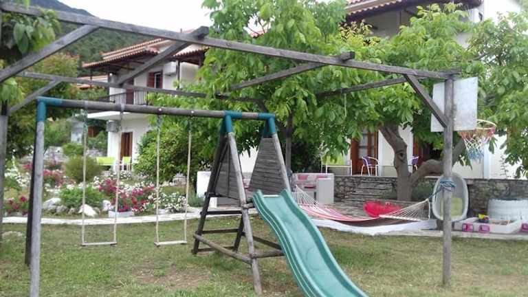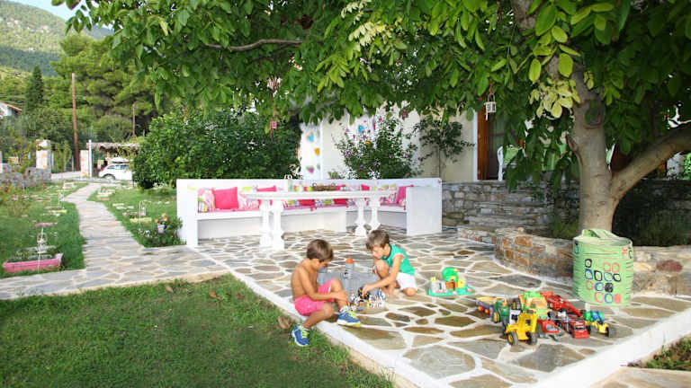 Entspannen Sie auf der möblierten Sonnenterrasse und genießen Sie die schöne Gartenanlage. Die kleinen Gäste können sich auf dem Spielplatz austoben. In der Umgebung gibt es auch Möglichkeiten für sportliche Aktivitäten wie Basketball und Fußball. Am Strand von Neo Klima können Sie Kajaks mieten und die umliegenden Strände erkunden. WLAN ist in den öffentlichen Bereichen kostenlos verfügbar und Parkplätze stehen Ihnen kostenfrei zur Verfügung.