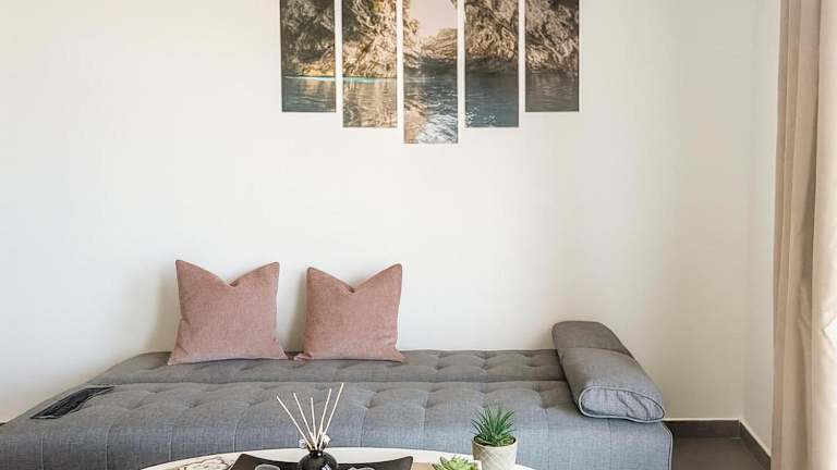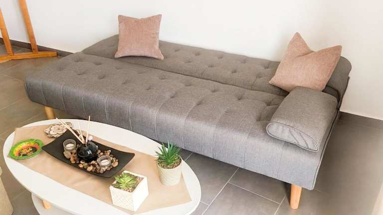 Die Ferienwohnung bietet eine komfortable Ausstattung mit einem Schlafzimmer, einem Wohnzimmer, einer voll ausgestatteten Küche einschließlich Kühlschrank und Kaffeemaschine sowie einem Badezimmer mit Dusche und kostenlosen Pflegeprodukten. Zu den weiteren Annehmlichkeiten zählen Klimaanlage, kostenloses WLAN und die Bereitstellung von Handtüchern sowie Bettwäsche.