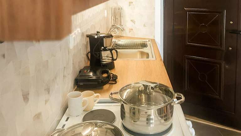 Die Unterkunft verfügt über ein Restaurant vor Ort, in dem Essenslieferungen in die Wohnung möglich sind. Angebote wie Wein/Sekt und frisches Obst sind ebenfalls verfügbar. Das Café vor Ort ergänzt das kulinarische Angebot.