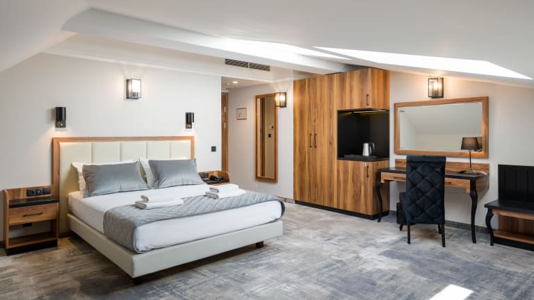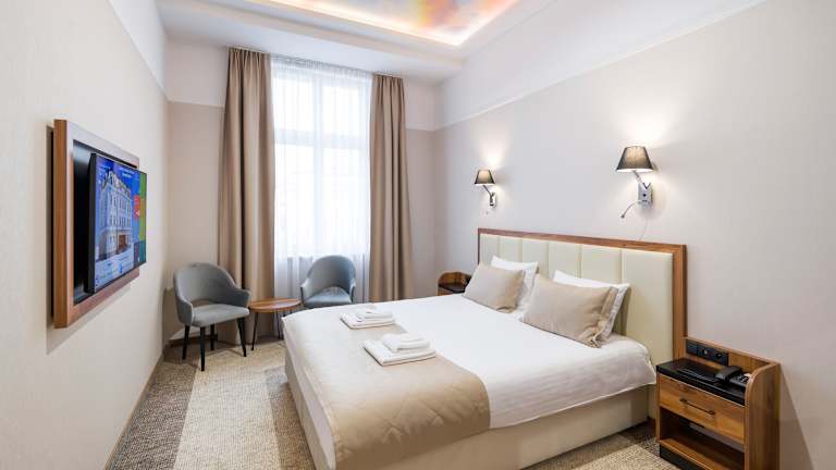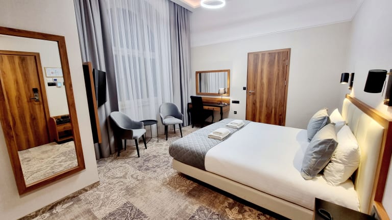 Die klimatisierten Zimmer im Sky Hotel Kraków sind mit einem Schreibtisch, einem Wasserkocher, einem Kühlschrank, einem Safe sowie einem Flachbild-TV ausgestattet. Jedes Zimmer verfügt über ein eigenes Badezimmer mit einer Dusche. Bettwäsche und Handtücher sind ebenfalls vorhanden.