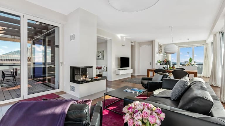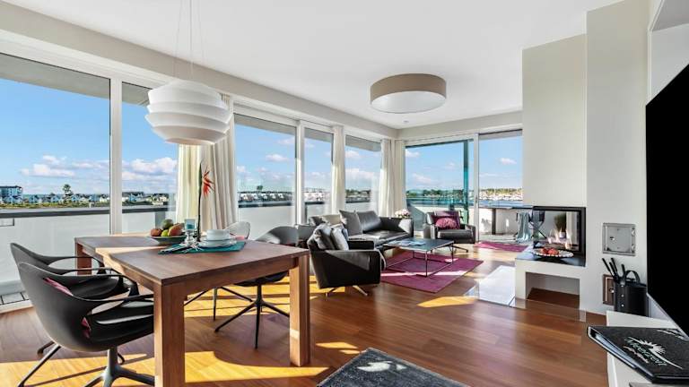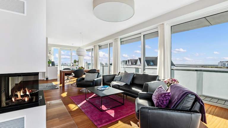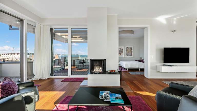 Die Sky Lodge ist ein exklusives Penthouse, das einen Panoramablick auf das Meer bietet. Es verfügt über eine Dachterrasse und einen Kamin, wodurch es eine komfortable und ansprechende Unterkunft darstellt.