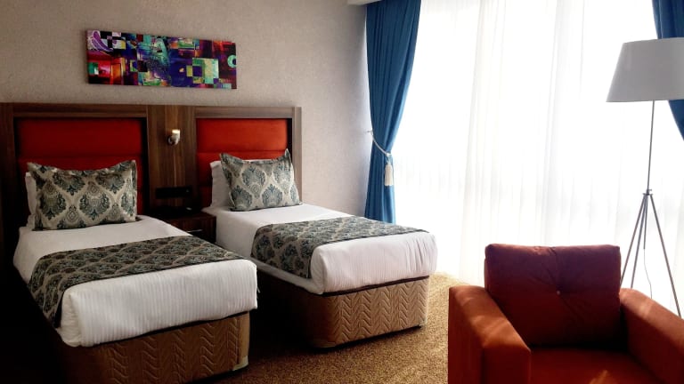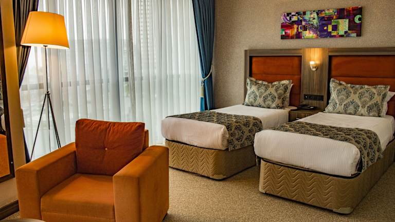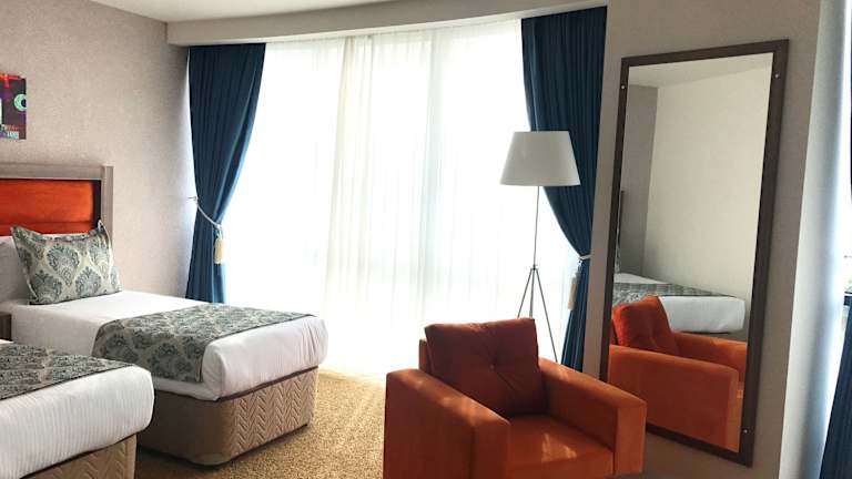 Das Hotel verfügt über 101 Zimmer, die alle elegant eingerichtet sind und einen atemberaubenden Blick auf das Meer und den See bieten. Jedes Zimmer ist mit Klimaanlage, einem Flachbild-TV mit Satellitenkanälen, einem Schreibtisch und einer Minibar ausgestattet. Im Badezimmer finden Sie kostenlose Pflegeprodukte, Bademäntel, Hausschuhe und einen Haartrockner. WLAN steht Ihnen in allen Bereichen des Hotels kostenfrei zur Verfügung.