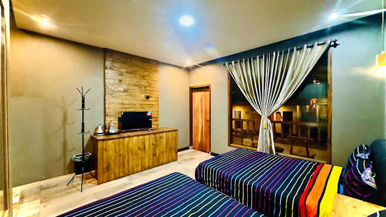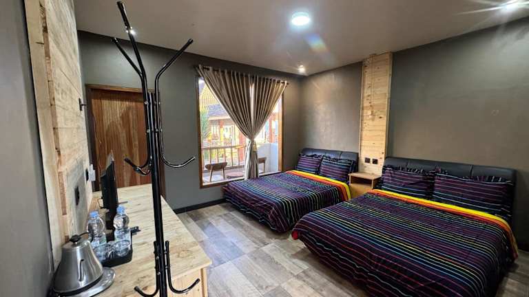 Die Zimmer sind mit einem eigenen Badezimmer ausgestattet. Einige Zimmer verfügen über einen Balkon und andere bieten einen Blick auf die Berge.