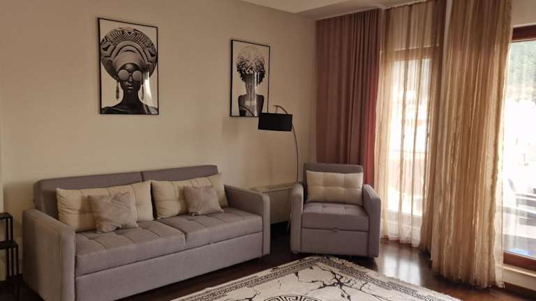 Die Unterkunft befindet sich in Bečići, etwa 800 m vom Strand Slovenska entfernt. In der Nähe gibt es die Insel Sveti Stefan, die 9,2 km entfernt liegt, sowie den Uhrenturm in Kotor, der 22 km weit weg ist. Der nächstgelegene Flughafen ist der Flughafen Tivat, lediglich 17 km von der Unterkunft entfernt.