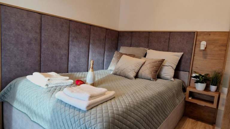 Das Nowe Domki Deluxe z widokiem na zatokę z basenem i sauną liegt etwa 18 km vom Hafen von Gdynia entfernt. Die Unterkunft bietet einen atemberaubenden Blick auf die Bucht und ist umgeben von einer malerischen Landschaft. In der Nähe finden Sie Wanderwege und die Möglichkeit, die Natur zu erkunden. Die Werft Gdynia und der Hauptbahnhof Gdynia sind jeweils 20 km entfernt. Der Flughafen Lech-Wałęsa in Danzig ist etwa 46 km entfernt.