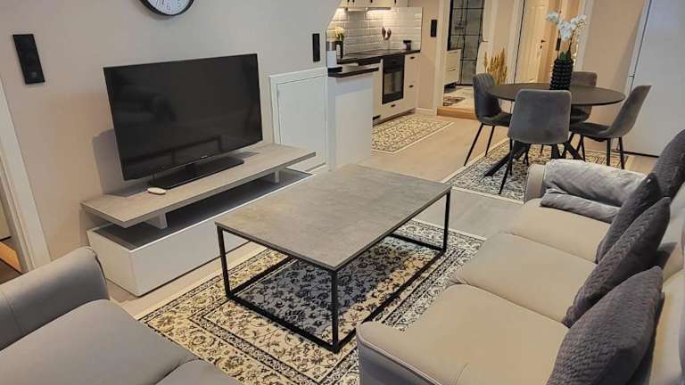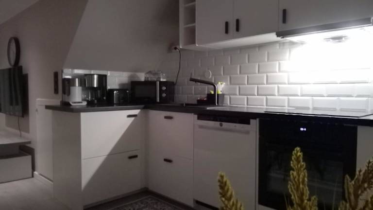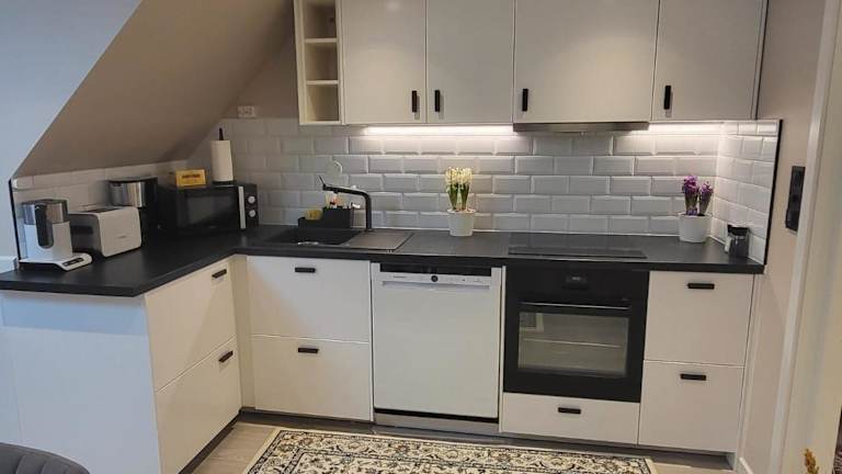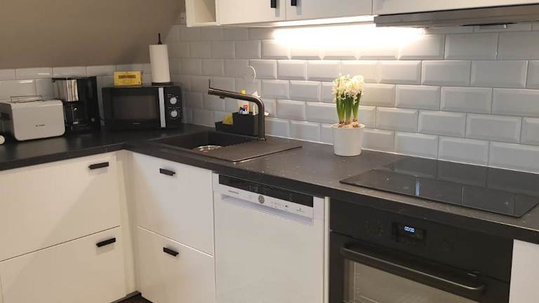 Die Ferienwohnung verfügt über ein Schlafzimmer, einen Flachbild-TV sowie eine voll ausgestattete Küche. Zur Küchenausstattung gehören ein Kühlschrank, ein Geschirrspüler, eine Waschmaschine, ein Ofen und eine Mikrowelle. Handtücher und Bettwäsche werden bereitgestellt.