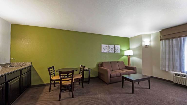 Die 66 Zimmer des Sleep Inn & Suites Central/I-44 Hotels sind komfortabel und bieten eine Klimaanlage für angenehme Temperaturen. Zur Standardausstattung gehören ein Doppelbett oder ein Sofabett, ein Safe, ein Kühlschrank, eine Mikrowelle, eine Tee-/Kaffeemaschine, ein Telefon, ein Fernseher mit Satellitenempfang und Pay-per-View-Optionen sowie kostenfreies WLAN. Die Badezimmer verfügen über eine Dusche und eine Whirlwanne. Es gibt auch rollstuhlgerechte Zimmer mit barrierefreiem Badezimmer für Gäste mit besonderen Bedürfnissen.