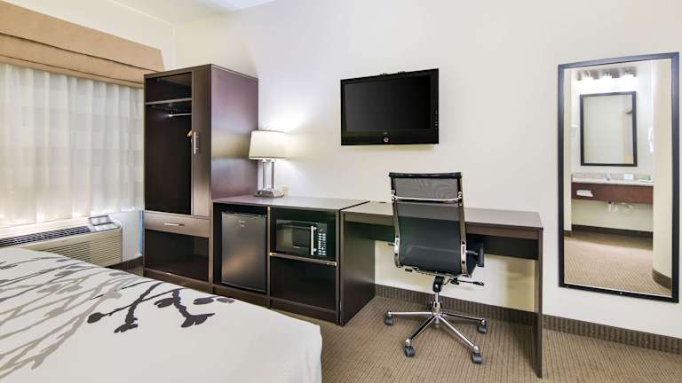 Die Zimmer im Sleep Inn sind komfortabel und mit modernen Annehmlichkeiten ausgestattet. Jedes Zimmer verfügt über einen Flachbild-Kabel-TV, eine Kaffeemaschine, einen Schreibtisch, eine Mikrowelle, einen Haartrockner, ein Bügeleisen/-brett und kostenfreies WLAN. Gäste können sich in den gemütlichen Zimmern entspannen und den Komfort genießen, den das Hotel bietet.