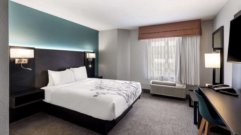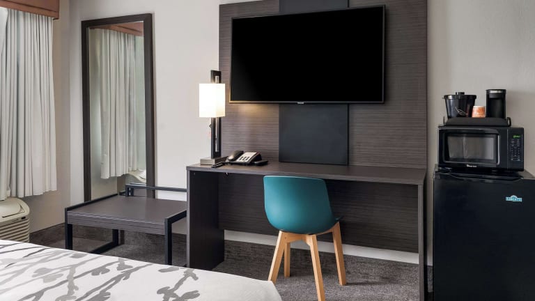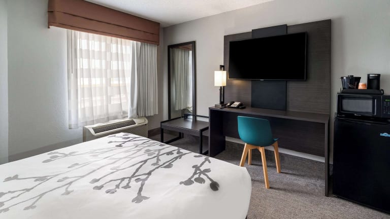 Die 63 Zimmer im Sleep Inn bieten Ihnen Komfort und Bequemlichkeit während Ihres Aufenthalts. Jedes Zimmer ist mit einer Klimaanlage, einem Doppelbett, einem Kühlschrank, einer Mikrowelle, einer Tee- / Kaffeemaschine, einem Telefon und einem TV-Gerät ausgestattet. Sie haben auch Zugang zu kostenlosem WLAN. Für zusätzlichen Komfort stehen Ihnen rollstuhlgerechte Zimmer zur Verfügung.