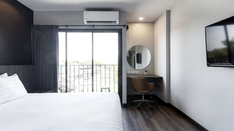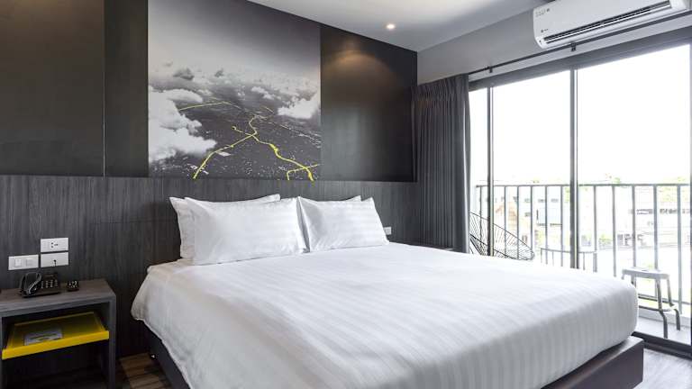 Das Sleep Mai Chiang Mai Airport Lifestyle Hotel - SHA Plus in Chiang Mai bietet eine ideale Unterkunft für Reisende, die eine entspannte und komfortable Atmosphäre suchen. Mit einem Außenpool, kostenfreien Privatparkplätzen und einer Terrasse bietet das Hotel alle Annehmlichkeiten für einen gelungenen Aufenthalt. Die Zimmer sind modern eingerichtet und verfügen über einen Balkon mit Stadtblick. Zudem bietet das Hotel einen freundlichen Service, kostenfreies WLAN und eine 24-Stunden-Rezeption.