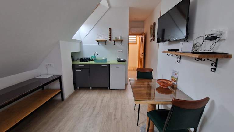 Die Unterkunft bietet klimatisierte Zimmer mit einer voll ausgestatteten Küche, einem Essbereich, einem Flachbild-TV und einem eigenen Badezimmer, das mit einer Dusche und einem Haartrockner ausgestattet ist. Zu den weiteren Annehmlichkeiten gehören ein Kühlschrank, ein Wasserkocher sowie eine Terrasse und Gartenmöbel.