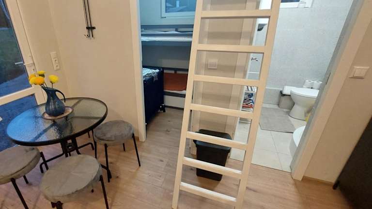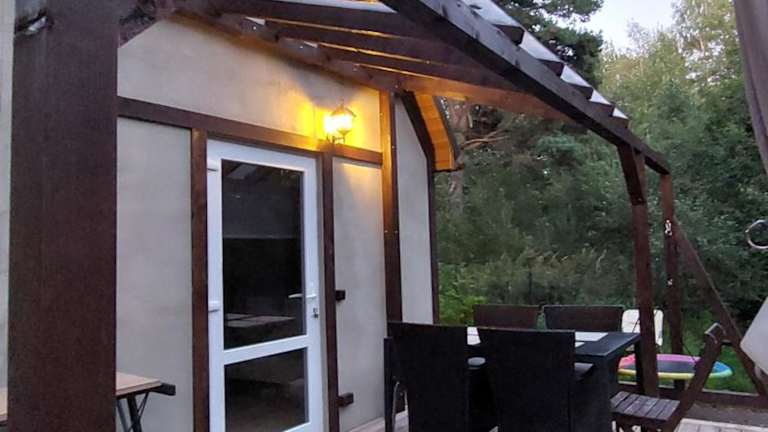 Das Ferienhaus bietet Platz für bis zu 6 Personen, mit der Möglichkeit, zusätzlich 2 Betten zur Verfügung zu stellen. Die Unterkunft umfasst Grillmöglichkeiten, Zugang zu einem Garten, eine Terrasse sowie Zimmerservice. Des Weiteren steht ein Kinderspielplatz zur Verfügung.