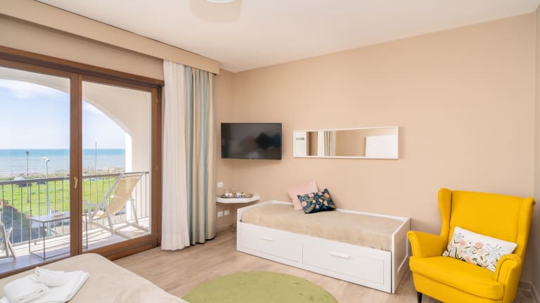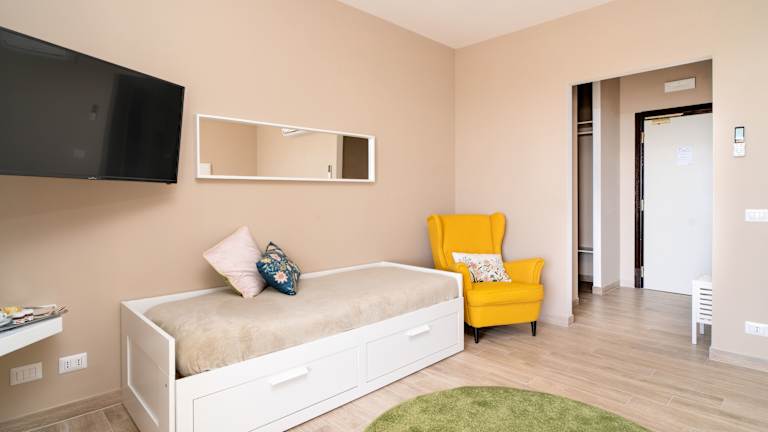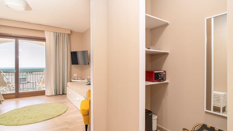 Die Zimmer im Smy Civico Zero sind mit Klimaanlage, einem Kleiderschrank, einem Flachbild-TV und einem Safe ausgestattet. Jedes Zimmer hat ein eigenes Badezimmer mit Pflegeprodukten und einem Haartrockner. Die meisten Unterkünfte bieten einen Balkon oder Meerblick. Sie verfügen über ein Doppelbett und ein Sofabett, mit der Möglichkeit, Zustellbetten anzufordern. Es sind auch rollstuhlgerechte Zimmer mit barrierefreiem Bad verfügbar. Die Unterkunft bietet sowohl Familienzimmer als auch Nichtraucherzimmer.