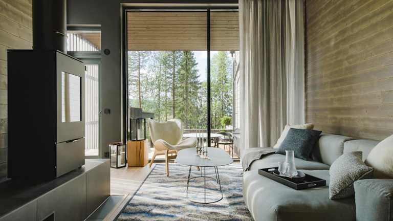 Snowbird Villas Levi, Arctic Nook bietet klimatisierte Wohneinheiten mit kostenlosem WLAN. Die Unterkunft verfügt über moderne Annehmlichkeiten, darunter eine Sauna und einen Whirlpool. Zu den Außenbereichen gehören eine Terrasse mit Blick auf die Berge. Zudem gibt es direkten Zugang zur Skipiste und einen Abstellraum für Skier.