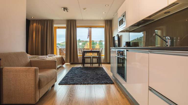 Snowline Stay A13 Levi Center Ski-In Ski-Out by Aavalevi bietet komfortable Übernachtungsmöglichkeiten mit direktem Zugang zu Skipisten und verschiedenen Annehmlichkeiten wie einer Sauna.