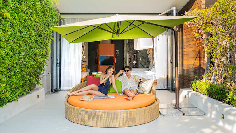 Es gibt 108 Zimmer, Suiten und Villen, die entweder im SO Arty oder SO Nature Stil gestaltet sind und je nach Lage im Resort die ultimative Rückzugsmöglichkeit für Familienpaare bieten. Alle Gästezimmer sind mit umfassenden Einrichtungen ausgestattet, um maximalen Komfort zu bieten, wie z.B. Regenduschen, MyBed mit Schlafmenü für eine erholsame Nachtruhe, sowie mit dem neuesten, hochmodernen Soundsystem, kostenlosem Wi-Fi und einer kostenlosen privaten Bar auf dem Zimmer.