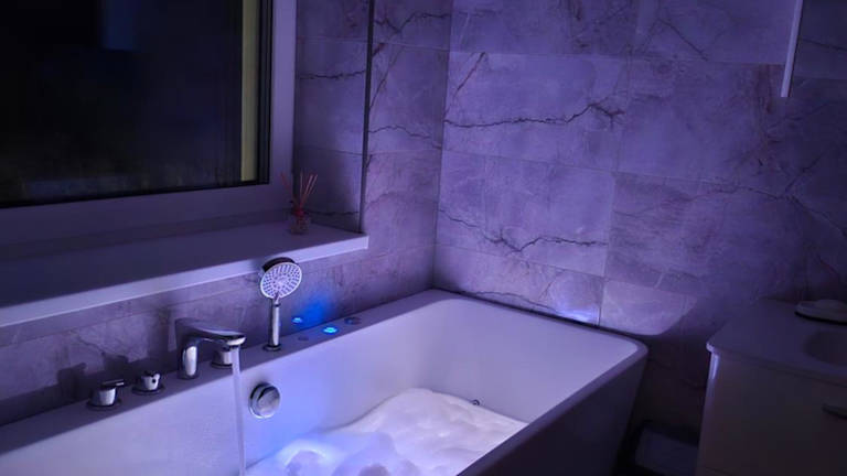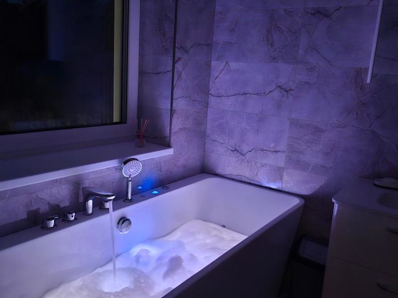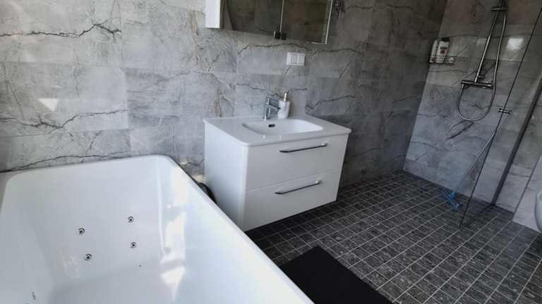 Die Ferienwohnung umfasst drei Schlafzimmer und ein Wohnzimmer. Die voll ausgestattete Küche beinhaltet einen Kühlschrank und eine Kaffeemaschine. Es stehen zwei Badezimmer zur Verfügung, die mit einer Dusche und einem Whirlpool ausgestattet sind. Handtücher und Bettwäsche werden bereitgestellt. Es sind Nichtraucherzimmer vorhanden, und die Unterkunft bietet Annehmlichkeiten wie einen Whirlpool/Jacuzzi.